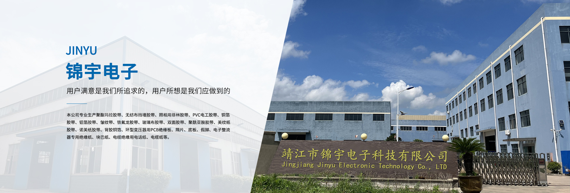 靖江市錦宇電子科技有限公司地處—靖江市。與上海、南京隔江相望,滬寧高速和京滬高速將蘇錫常及京廣連為一體,東依開放港口城市南通,西連新長鐵路,南臨長江萬噸船用碼頭,北接寧通一級高速公路,水陸交通便捷,經(jīng)營環(huán)境優(yōu)良。 本公司專業(yè)生產(chǎn)聚酯瑪拉膠帶、無紡布擋墻膠帶、照相用菲林膠帶、PVC電工膠帶、銅箔膠帶、鋁箔膠帶、皺紋帶、鐵氟龍膠帶、玻璃布膠帶、雙面膠帶、聚酰亞胺膠帶、美紋紙膠帶、諾美紙膠帶、背膠銅箔、環(huán)型變壓器用PCB絕緣板、隔片、底板、假腳、電子整流器專用絕緣紙、塊巴紙、電纜絕緣用電話紙、電纜紙等。 公司依靠先進的科學管理,精良的生產(chǎn)裝備,合理的工藝設(shè)計,完善的檢測設(shè)備,以著“科技創(chuàng)新、質(zhì)量為本、誠信服務”的信念。并嚴格貫徹ISO9001國際質(zhì)量體系的程序和規(guī)格,為廣大用戶提供優(yōu)質(zhì)的產(chǎn)品與滿意的服務。 多年來,公司本著“用戶滿意是我們所追求的,用戶所想是我們應做到的”的經(jīng)營理念;“質(zhì)量保障,價格合理,服務誠信”的企業(yè)宗旨。熱忱歡迎海內(nèi)外各界人士、朋友前來洽談、合作,攜手共創(chuàng)輝煌的明天。